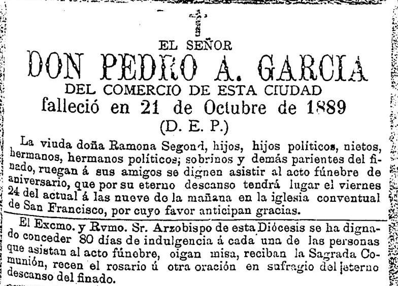 Pedro Antonio García Fijó - 21 de octubre de 1889